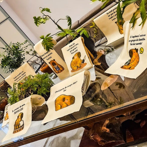 Estampas exclusivas de capivaras estilosas, frases que arrancam risadas e aquele toque de personalidade que sua cozinha merece.